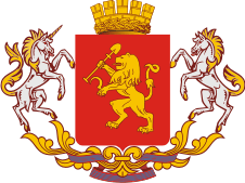 ​Воспроизведение герба города с щитодержателями и подножием может быть использовано только при размещении герба города: