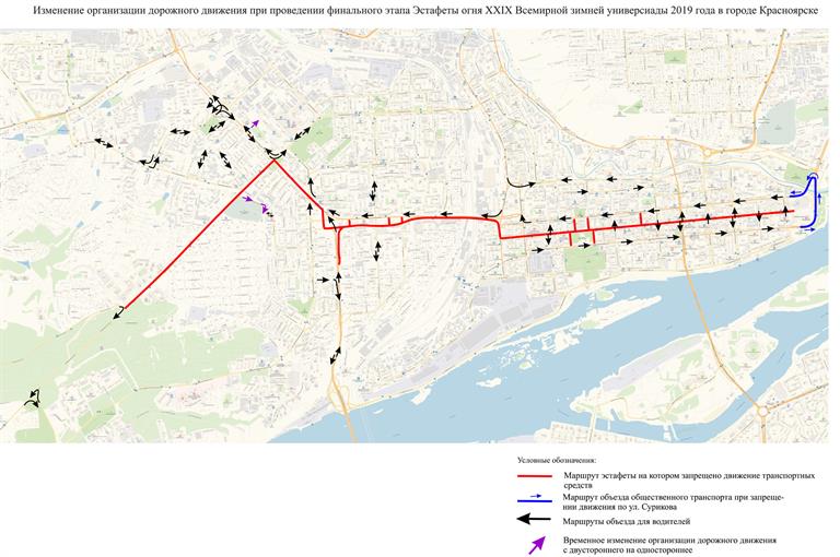 Во время проведения Эстафеты огня Универсиады-2019 в Красноярске изменится схема движения транспорта
