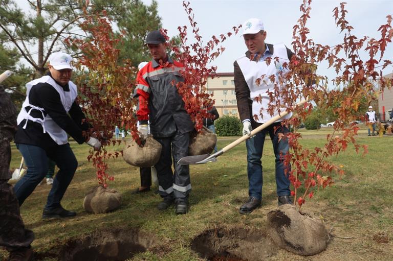 Красноярцы высадили деревья на набережной «Зелёный берег»