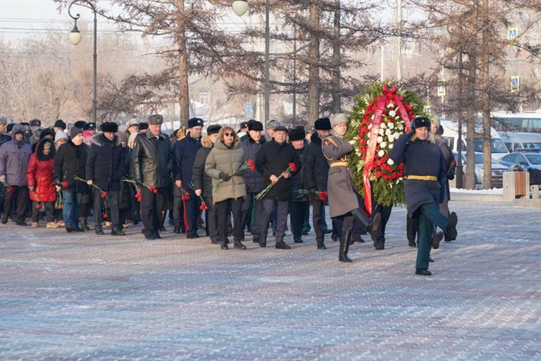 В ознаменование 80-й годовщины разгрома немецко-фашистских войск в Сталинградской битве красноярцы возложили венки и цветы к Вечному Огню на Мемориале Победы.
