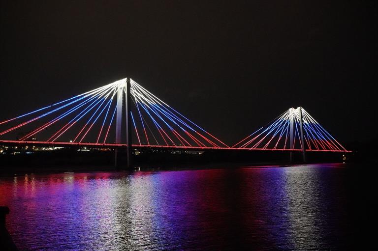 По традиции вантовый, Николаевский и Коммунальный мосты 21 и 22 августа окрасятся в белый, синий и красный цвета Государственного флага России.