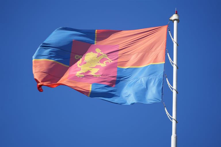 В память о подвиге поколения 40-х над площадью у мэрии поднят флаг Красноярска