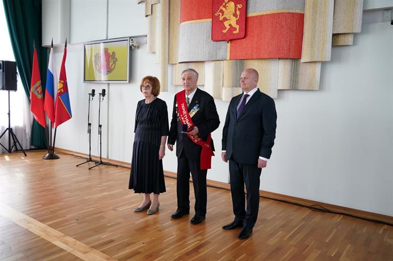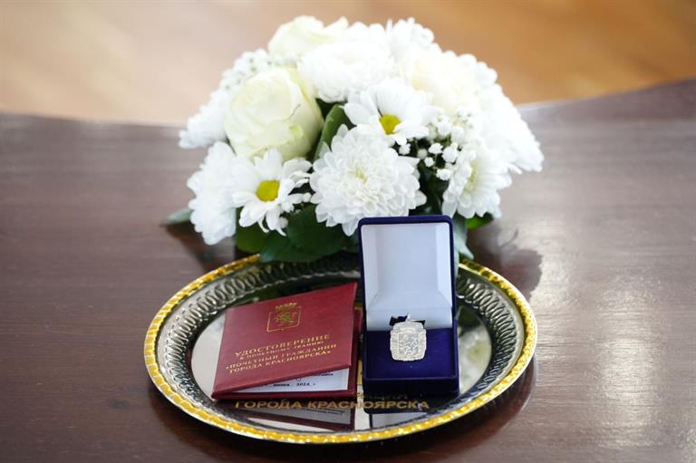 Мэр Владислав Логинов и председатель Красноярского городского совета депутатов Наталия Фирюлина вручили лауреатам почётного звания нагрудные знаки, удостоверения и цветы.