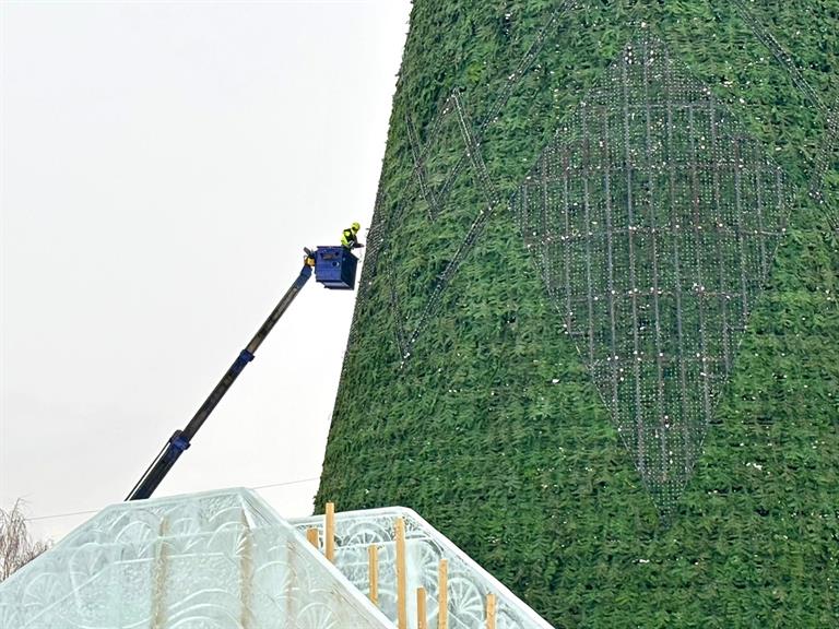 ​Всего в парках и скверах за счёт бюджета города в этом году установили 17 ёлок. Самая большая – на острове Татышев. Там тоже уже завершили монтаж. Сейчас идёт наладка и тестовые запуски праздничных огней, чтобы к приходу гостей все чётко работало.