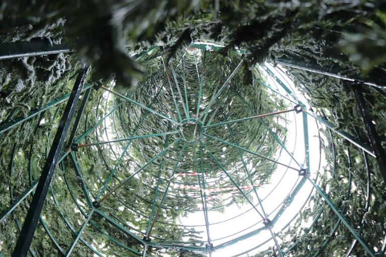 Главная городская ёлка уже собирается в Татышев-парке. Процесс монтажа не самый быстрый: сначала формируют каркасы, потом их украшают «лапами». Затем с помощью высотной техники ёлку собирают как детскую пирамидку. После – монтируют световые украшения, новогодние шары и верхушки.