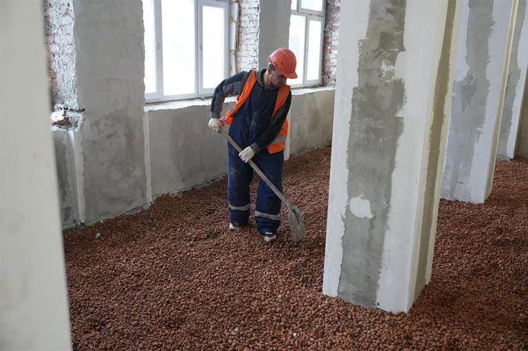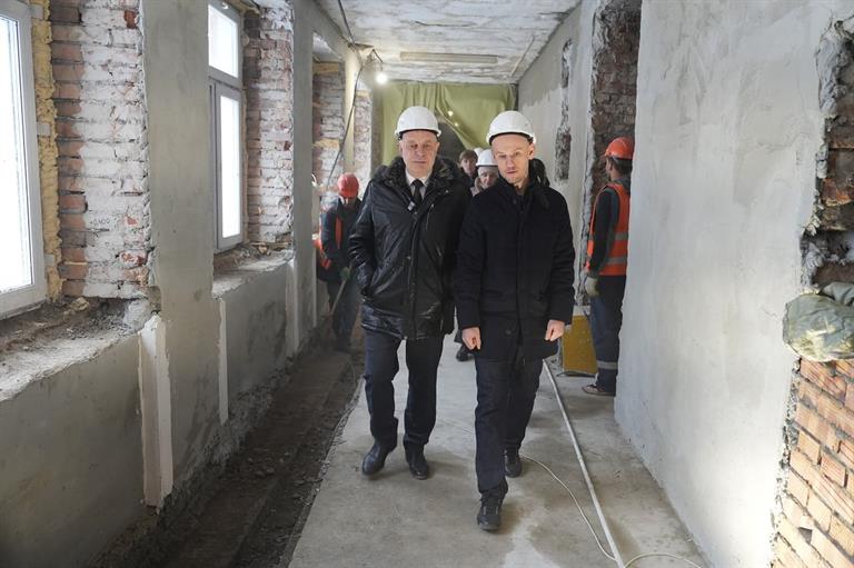 На сегодняшний день полностью выполнены усиление фундамента школы и перекрытий 2-го и 3-го этажей, обновление кровли. В самом здании завершаются монтаж перегородок и штукатурные работы, идёт обустройство систем горячего и холодного водоснабжения, канализации, электроснабжения, вентиляции.